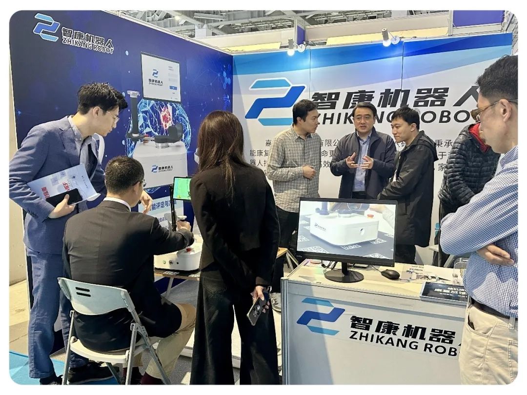展台展示了智康自主研发的上肢康复机器人,充满趣味性的康复训练模式吸引了众多观众前来体验,也深受业内人士的好评。