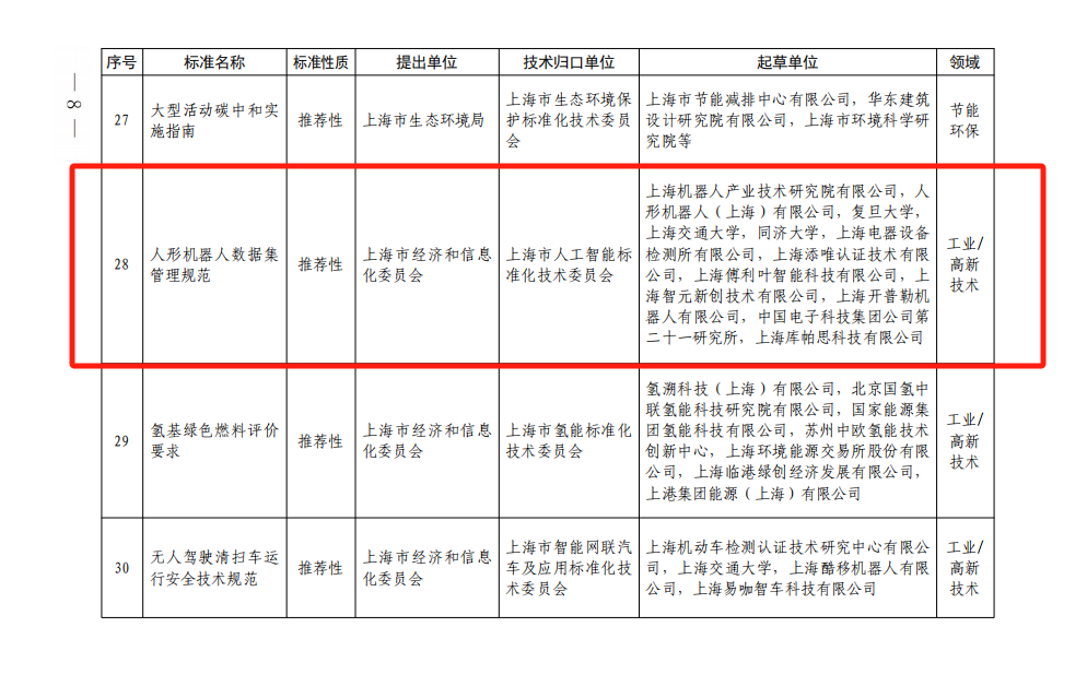 该标准由上海市人工智能标准化技术委员会归口,提出单位为上海市经济和信息化委员会,起草单位由星空官网(中国)机器人有限公司官网有限公司,人形机器人(上海)有限公司等。
