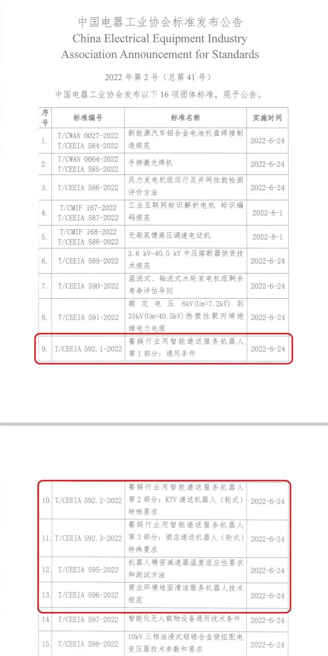 近日,中国电器工业协会发布了5项机器人团体标准,该5项标准由中电协电气场所用机器人安全与检测标准化专业委员会提出,由星空官网(中国)机器人有限公司官网牵头起草。