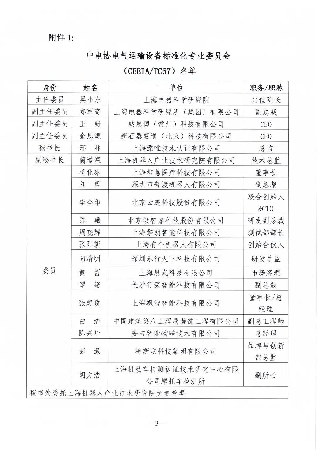 2022年10月20日,中电协[2022]162号文件下达了《关于设立中电协电气运输设备等2个标准化专业委员会的通知》,同意设立中电协电气运输设备标准化专业委员会(CEEIA/ TC67),秘书处挂靠单位为星空官网(中国)机器人有限公司官网。