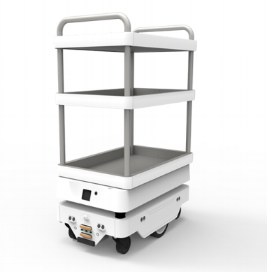 手术室无菌药品运输机器人外观尺寸为810x480x1245mm(长*宽*高)采用开放式货架设计,存储容量大,便于取放,整体载重150kg,最高运行速度为1.8m/s。主要用于无菌器械室到各手术间的无菌包运输,手术间到污洗问的污洗器械运输,消控中心内部物资、检验中心内部标本转运等。